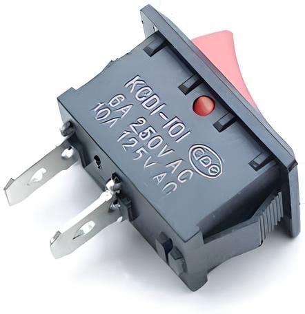 The KCD1-101 is a compact and reliable rocker switch ideal for a variety of electronic and electrical applications. Designed with a built-in red indicator light for clear ON/OFF status visibility, this Single Pole Single Throw (SPST) switch supports 6A at 250V AC and 10A at 125V AC, making it suitable for both high and low voltage operations. Its sturdy snap-in panel mount design ensures easy installation in power strips, appliances, and DIY electronics projects.